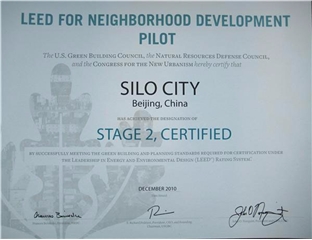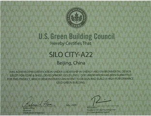 北京賽洛城A-22號樓榮獲美國綠色建筑委員會頒發的LEED-CS單體建筑預認證金級以及美國綠色建筑協會LEED-ND綠色社區認證。