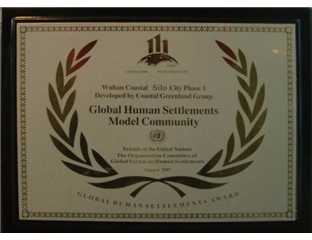 聯合國人居署授予--上海麗水馨庭 “最佳范例推動獎”。