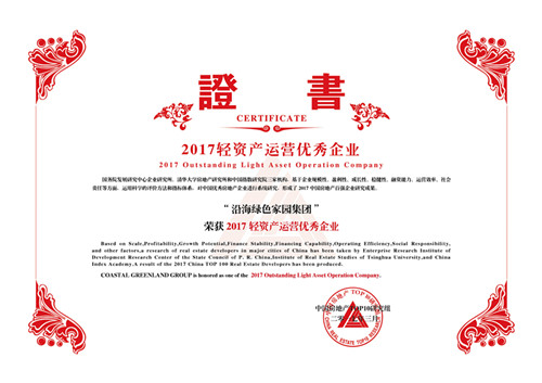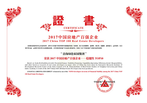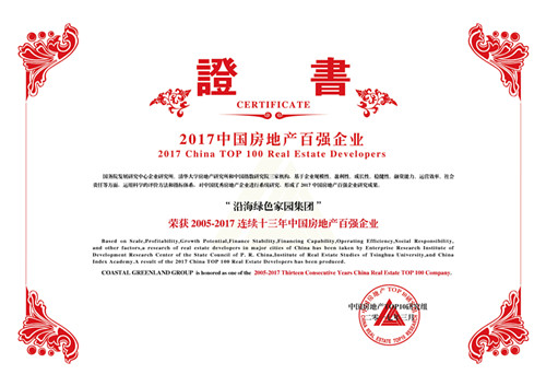 2017年3月16日,由國務(wù)院發(fā)展研究中心企業(yè)研究所、清華大學(xué)房地產(chǎn)研究所和中國指數(shù)研究院三家單位共同主辦的“2017中國房地產(chǎn)百強企業(yè)研究成果發(fā)布會暨第十四屆中國房地產(chǎn)百強企業(yè)家峰會”在北京釣魚臺國賓館隆重舉行。沿海綠色家園集團(以下簡稱沿海集團)此次榮獲“2005-2017連續(xù)十三年中國房地產(chǎn)百強企業(yè)” 、“2017中國房地產(chǎn)百強企業(yè)——穩(wěn)健性TOP10”和“2017輕資產(chǎn)運營優(yōu)秀企業(yè)”三項殊榮。
